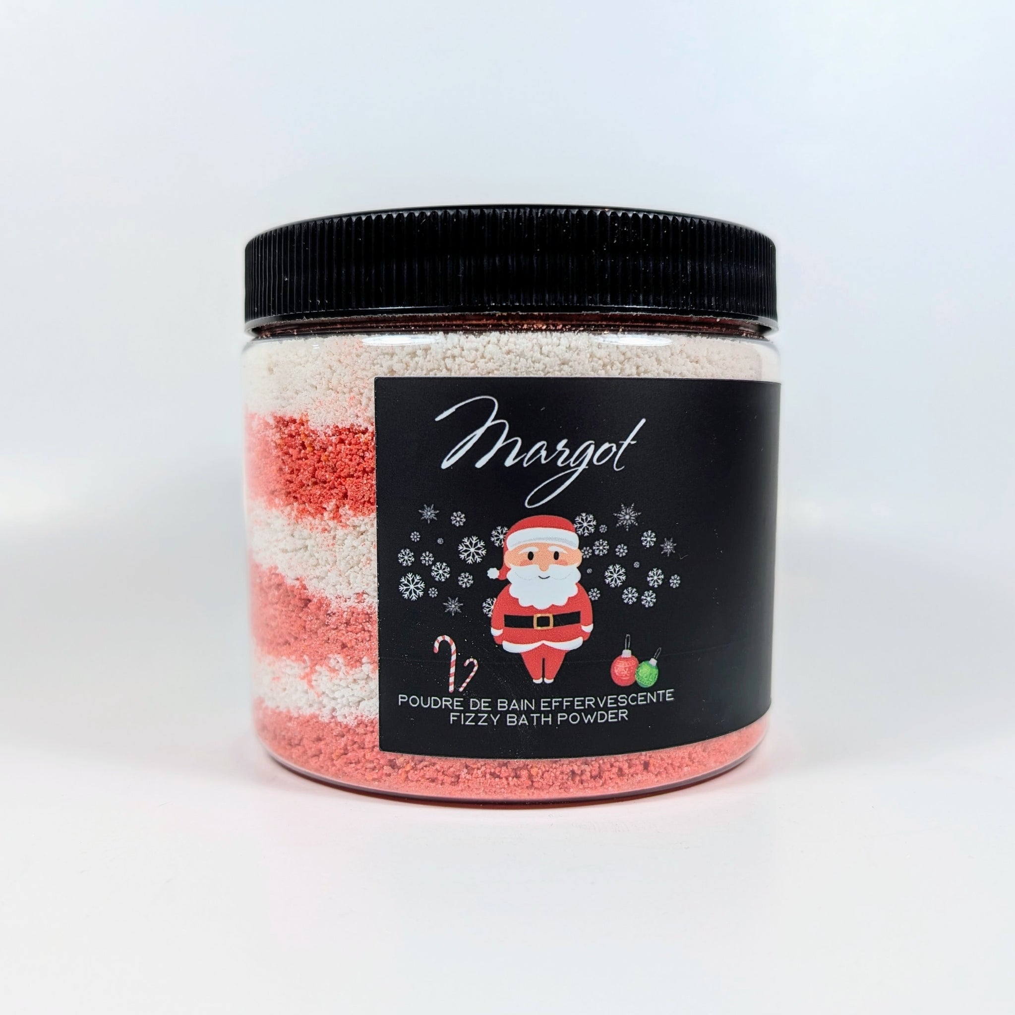 La même recette que nos bombes de bain régulières, mais en poudre de bain.